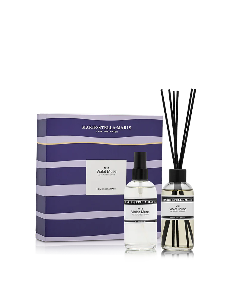 Het perfecte duo voor een subtiele geurverspreiding in huis. De geurstokjes parfumeren de ruimte continu, en de roomspray geeft een geurboost wanneer gewenst. Geniet van de elegante geur No.11 Violet Muse met tonen van iris, muskus en sandelhout. De set bestaat uit: