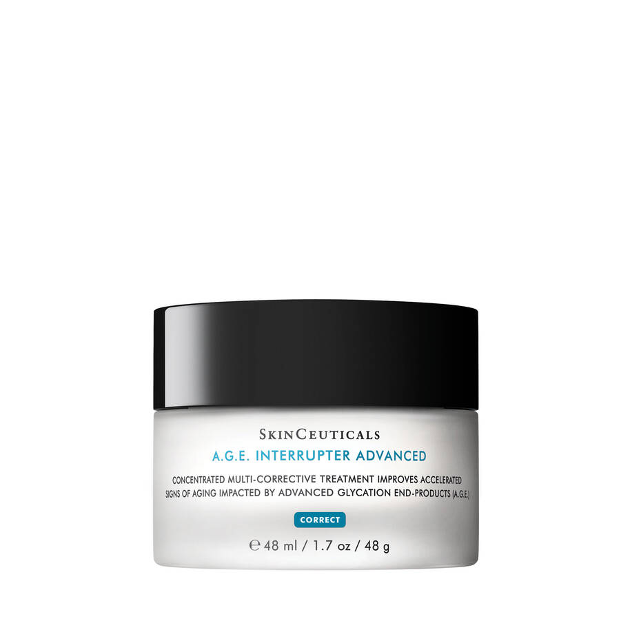 SkinCeuticals A.G.E. Interrupter Advanced is een unieke, veelzijdige anti-rimpelcreme, cosmetisch elegante crème om het aanzien van ‘kreukende’ en de dunner wordende huid te verbeteren, en de teint egaler te maken om meer te kunnen stralen. De A.G.E. Interrupter gaat elasticiteitsverlies tegen en geeft een zichtbaar jongere, gladdere en egaler uitziende huid.